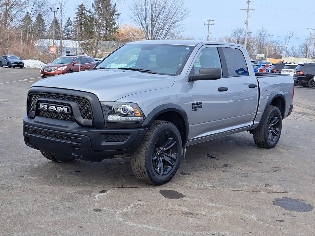17 x 7 Aluminum Wheels, 3.21 Rear Axle Ratio, 4-Wheel Disc Brakes, 40/20/40 Split Bench Seat, 4x4 Flat Black Badge, 6 Speakers, ABS brakes, Active Grille Shutters, Air Conditioning, Alloy wheels, AM/FM radio: SiriusXM, Audio Input Jack for Mobile Devices, B-Pillar Black Out, Bi-Function Halogen Projector Headlamps, Black Exterior Mirrors, Black Exterior Truck Badging, Black Grille w/RAM Lettering, Black Headlamp Filler Panel, Black Powder Coated Front Bumper, Black Powder Coated Rear Bumper, Black RAM Head Tailgate Badge, Black Wheel Flares, Brake assist, Bumpers: chrome, Center Hub, Cloth 40/20/40 Bench Seat, Compass, Delay-off headlights, Driver door bin, Dual front impact airbags, Dual front side impact airbags, Electronic Shift, Electronic Stability Control, Exterior Mirrors w/Heating Element, Front anti-roll bar, Front Armrest w/3 Cupholders, Front Center Armrest w/Storage, Front reading lights, Front wheel independent suspension, Front Wheel Well Liners, Fully automatic headlights, GPS Antenna Input, Heated door mirrors, Illuminated entry, Integrated Voice Command w/Bluetooth, Low tire pressure warning, Manufacturer's Statement of Origin, Occupant sensing airbag, Outside temperature display, Overhead airbag, Overhead console, Panic alarm, ParkSense Rear Park Assist System, ParkView Rear Back-Up Camera, Passenger door bin, Passenger vanity mirror, Power door mirrors, Power steering, Power windows, Quick Order Package 29F Warlock, Radio data system, Radio: Uconnect 3 w/5 Display, Raised Ride Height, Rear anti-roll bar, Rear Extra HD Shock Absorbers, Rear seat center armrest, Rear step bumper, Remote keyless entry, Remote USB Port, Remote USB Port - Charge Only, Semi-Gloss Black Hub, Speed control, Sport Tail Lamps, Storage Tray, Tachometer, Tilt steering wheel, Tip Start, Traction control, Trip computer, Variably intermittent wipers, Voltmeter, Warlock, Warlock Interior Accents, Wheels: 20 x 9 High Gloss Black Aluminum. CARFAX One-Owner. Clean CARFAX.